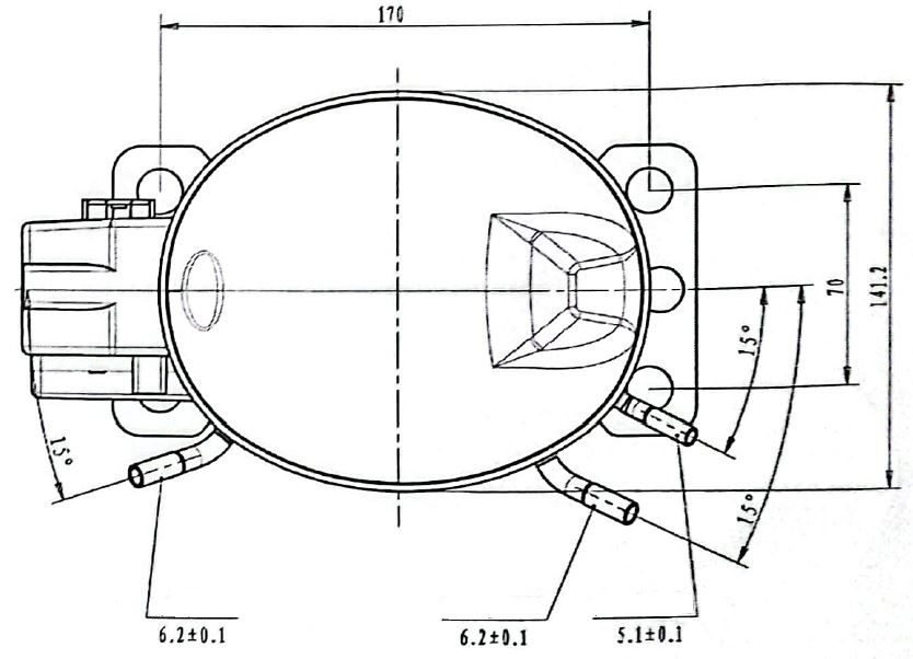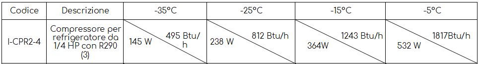 Compressore per refrigeratore con gas R290 e potenza 1/4 hp (rif. GQR55U). Completo di condensatore per l’avviamento.