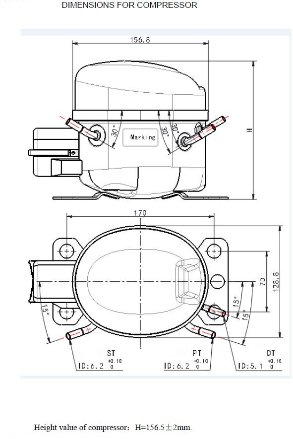Compressore per refrigeratore con gas R600a e potenza 1/7 hp (rif.QD65YG). Completo di condensatore per l’avviamento.