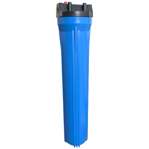Contenitore in polipropilene da 20″ slim a singolo bicchiere con ingresso ed uscita filettati in ottone e valvola di sfiato.
